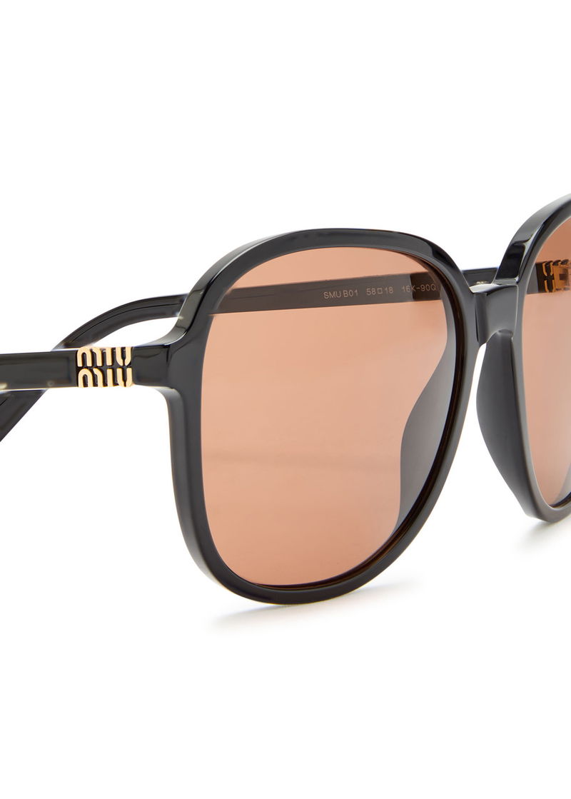 Miu Miu acetate sunglasses. Designer-engraved lenses, designer plaque at temples, metal tips.