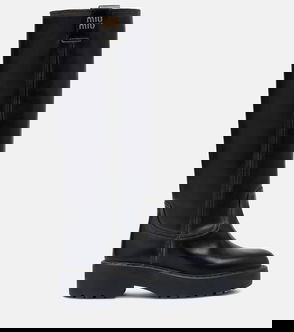 Miu Miu showcases their renowned off-kilter opulence with these knee-high boots. Made from padded, quilted nylon, they feature a removable fleece lining and drawstring closure for optimum insulation, radiating sporty, yet luxury allure.
