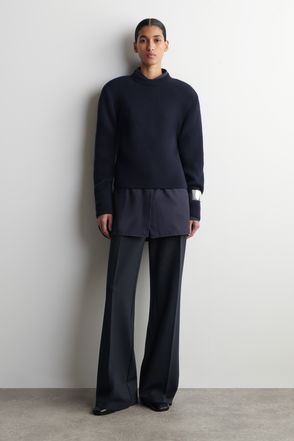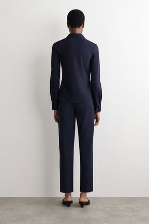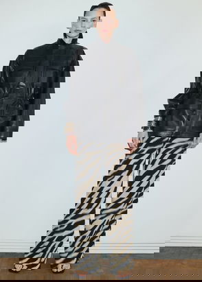 An unusual and therefore more covetable silhouette from Miu Miu, fans of the brand will adore this foray into pants. Made from a comfortable blend of cotton with stretch, they have a straight-leg fit as well as an all-over animal print in black and white. An oversized white shirt lends an elevated slant to on-the-clock attire.