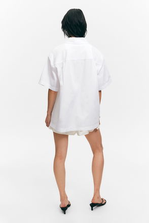 Embodying a power-dressing aesthetic, the pleated puff sleeves bring a voluminous twist to the straight-cut body of Miu Miu's white shirt. It's made in Italy from classic cotton poplin with a button-down point collar and chest pocket, then fastens with a row of pearlescent buttons. Team it with a floral-embroidered skirt and sandals for a chic edit.