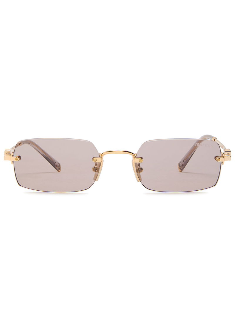 Miu Miu metal sunglasses. Designer-engraved lenses, designer plaque at temples, acetate tips.