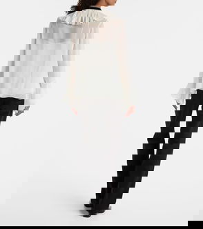 Play with layers and soft silhouettes wearing this airy blouse from Miu Miu. Made from sablé with a semi-sheer panel in the center, it's the epitome of modern elegance.