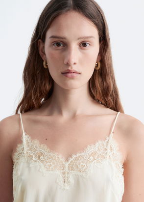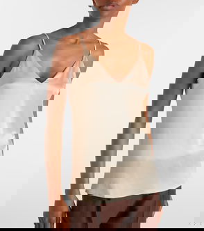 Miu Miu puts an elegant spin on lingerie with this delicate camisole. Made from neutral-toned satin, this style features a straight neckline, a raw hem, and is finished with the brand's logo label at the front.