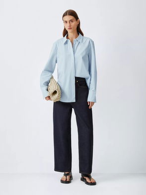 Build sophisticated ensembles around this shirt from Miu Miu. A striped design in cotton poplin, this cropped piece is finished with the brand's logo embroidered at the chest.