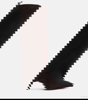 Crafted from smooth leather, these knee-high boots feature stacked heels, squared toes, and western-inspired buckles and hardware for a tough-luxe edge.