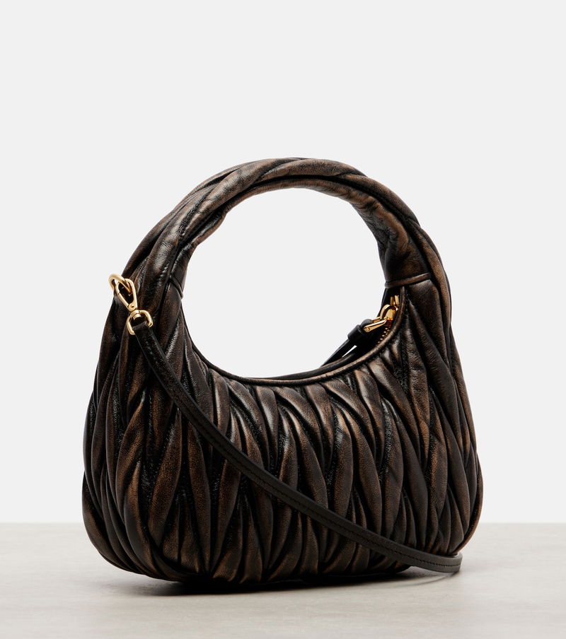 The Wander Small tote bag is a must-have for your accessory collection with its brushed gold details and gleaming logo hardware. This style is made using Miu Miu's signature matelassé technique, which brings a youthful energy to leather goods.