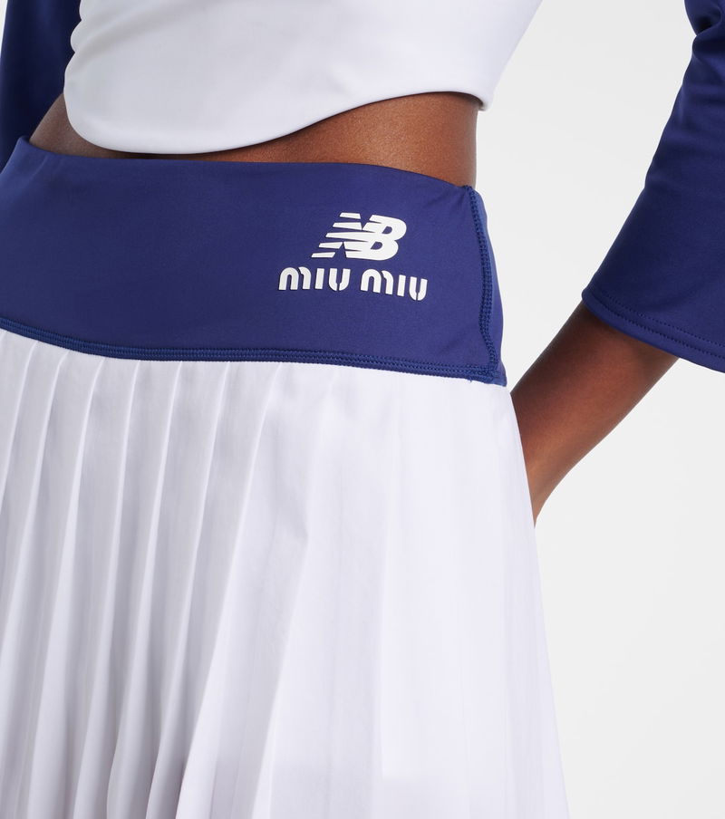 Miu Miu brings style to the game with a collaboration with New Balance and tennis star Coco Gauff. This jersey miniskirt features a pleated silhouette and an elasticated waistband with a logo detail.