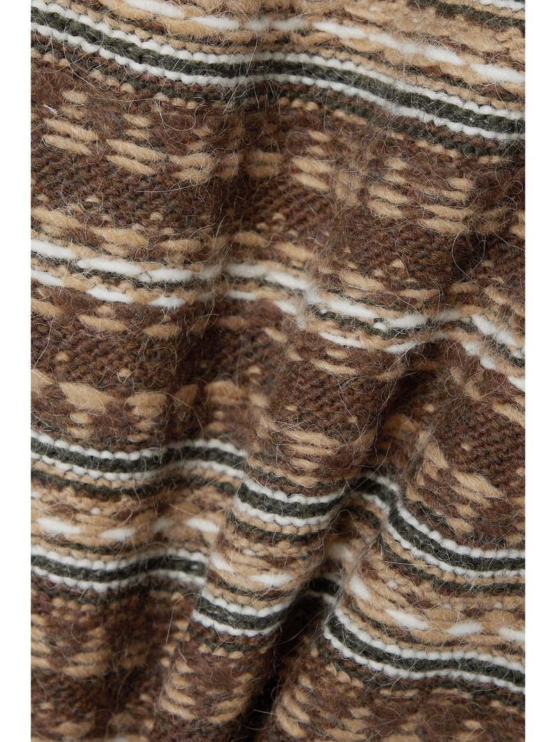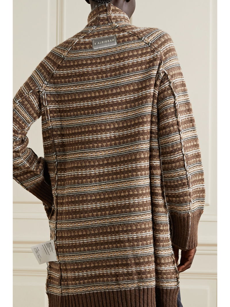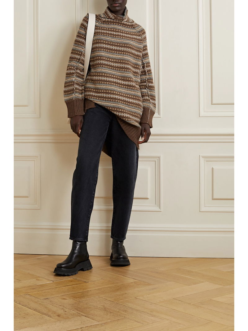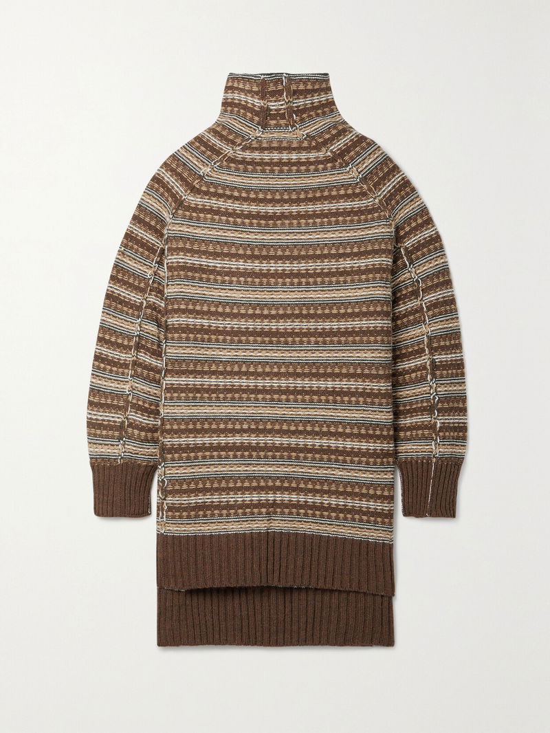 MM6 Maison Margiela's turtleneck sweater is jacquard-knitted with touches of insulating alpaca and wool in striped neutral tones that are perfect for fall. It has an oversized fit and exposed seams to give it a cool inside-out look.