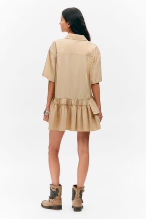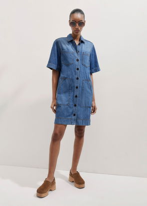 Shirt dress, Striped, Cotton Oxford, Oversized, Paneled, Buttoned cuffs, Two side slit pockets, Button fastenings through front, Mid-weight, non-stretchy fabric.