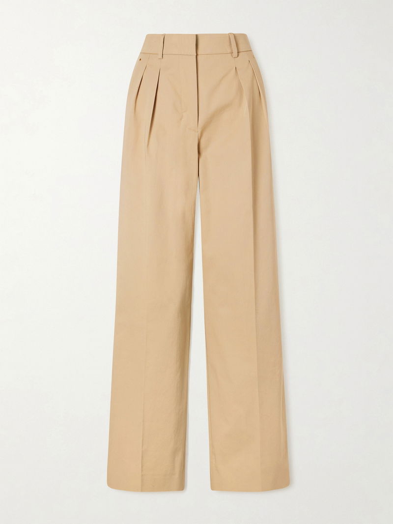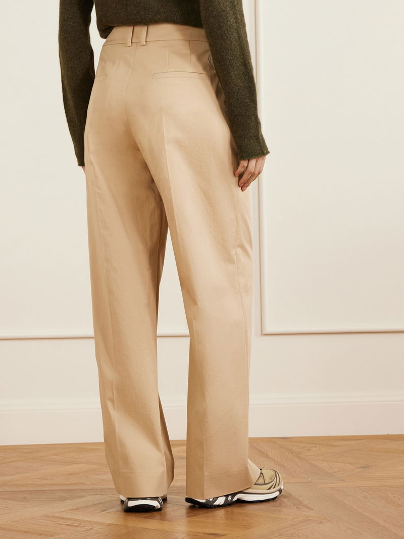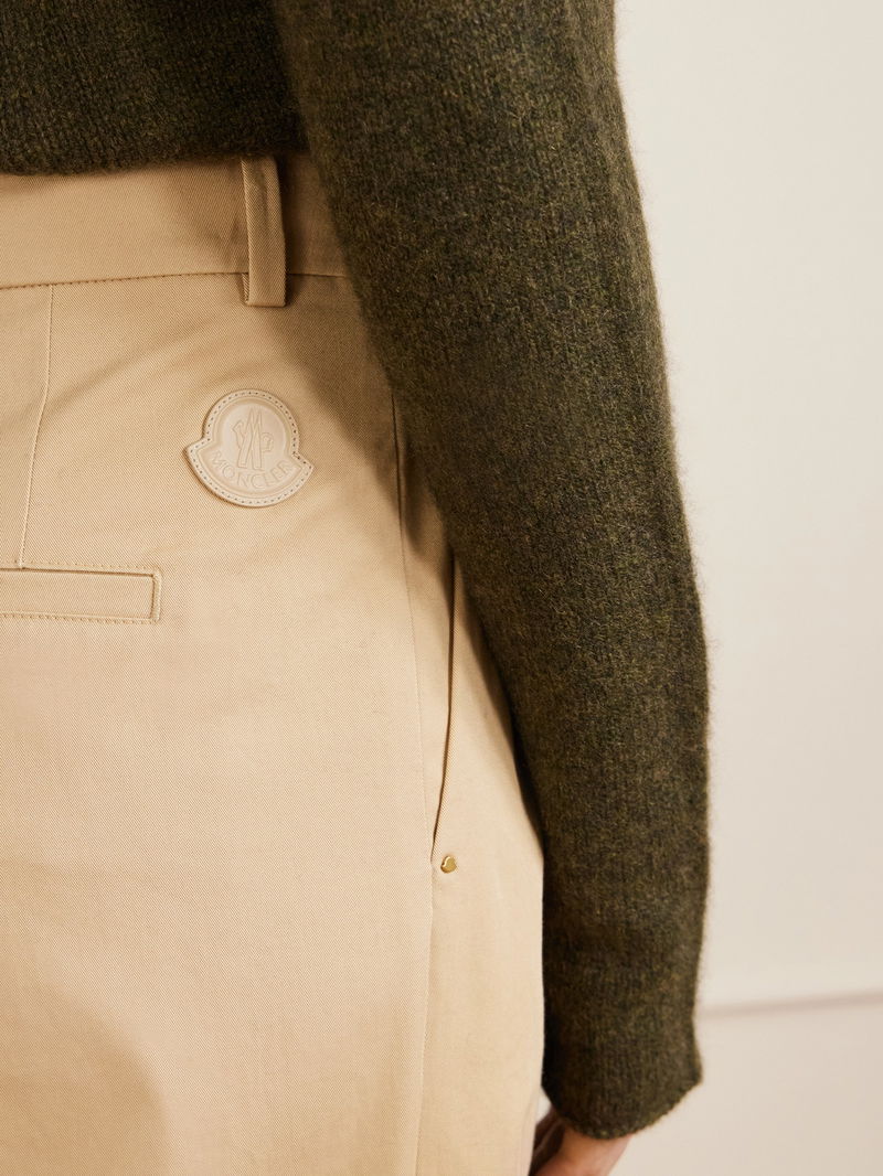 Moncler's pants offer a technical approach to traditional tailoring. Made from cotton-twill, they have wide legs enhanced by pleats and are appliquéd with the label's logo patch at the back pocket. Complement the high-rise with a boxy tee.