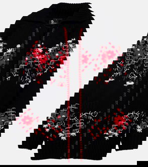 For a distinctive blend of textures, look to this zip-up cardigan from Moncler. The design is made from wool in a fine cable-knit, and finished with fuzzy trims on the hem and sleeves.