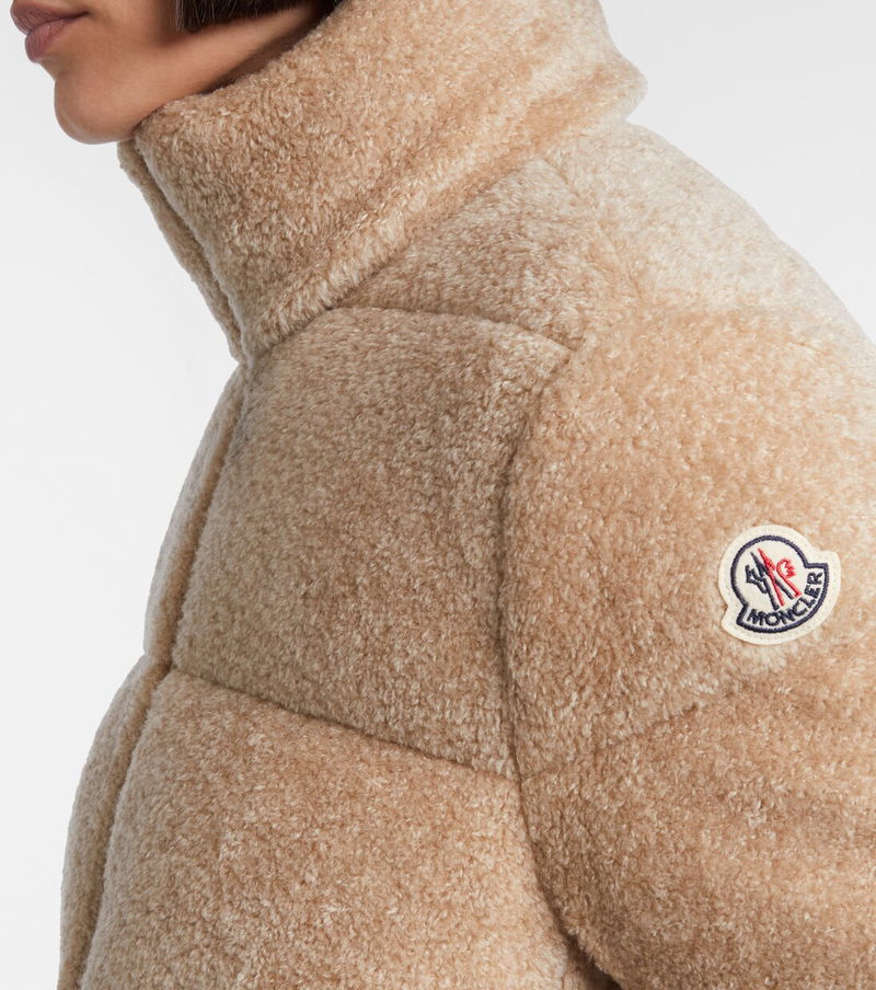 This Cedre down jacket is presented in a soft teddy finish, detailed with Moncler's signature quilting. The design stands out with an insulating high collar, two-way front zip closure, and a ruffled drawstring hem.