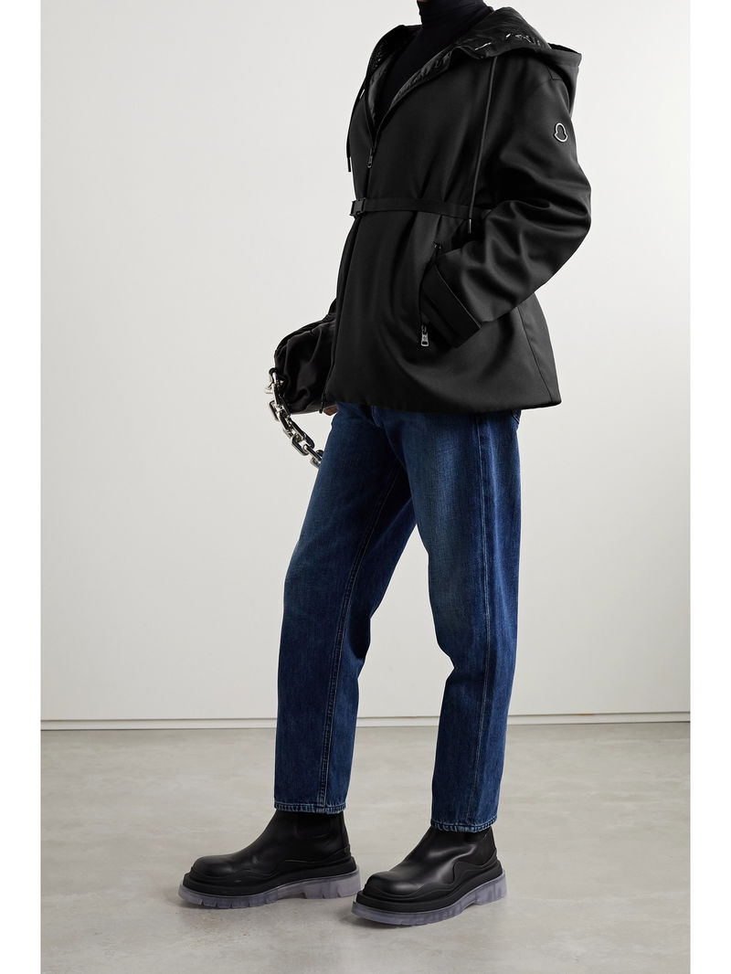 When it comes to quality, Moncler never wavers - each batch of down is carefully inspected by the brand's team of specialists not once, but twice. Filled with the insulating material, this hooded 'Gredi' jacket is cut from black gabardine and has a slim, buckled belt. The visible glossed-shell lining ensures easy layering.
