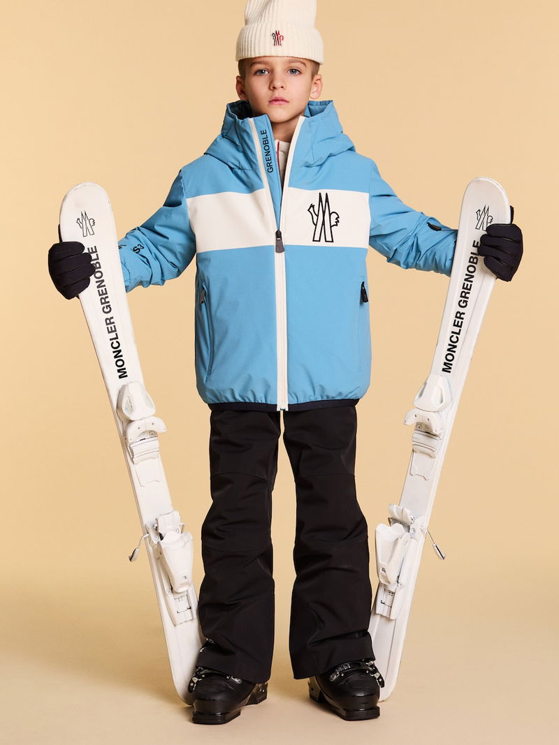 Look to Moncler Grenoble Enfant for high-performance skiwear in smaller silhouettes. This ski jacket has technical fabrication and the brand's logos printed on the front and back.