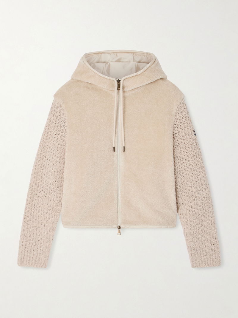 Moncler's cardigan is so cozy, thanks to its contrasting textures. It's made from insulating wool-blend bouclé and has a fleece panel at the front. Zip yours over a long-sleeve top when it's cold out. -
