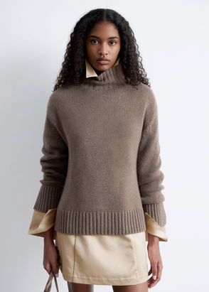 Moncler’s sweater is knitted from an insulating wool and cashmere blend, with defined ribbing through the bodice that adds contrast in texture. It has a slim fit with a cozy collar and features the signature bell-shaped logo patch. Wear it solo or layered over a collared shirt.