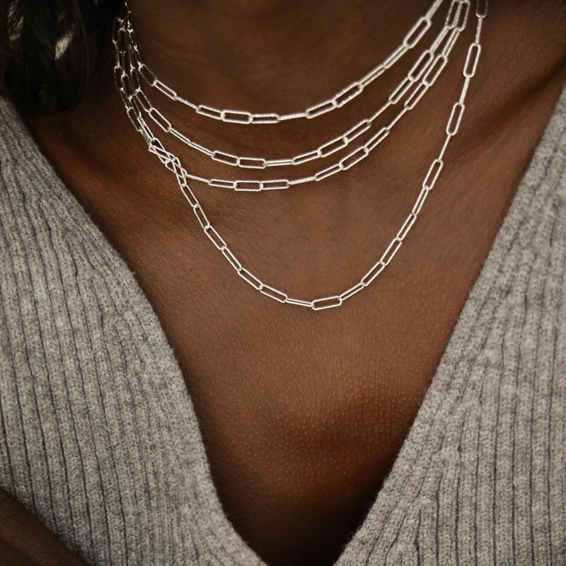 An everyday chain textured to catch the light. Wear alone or stack up with your favourites.