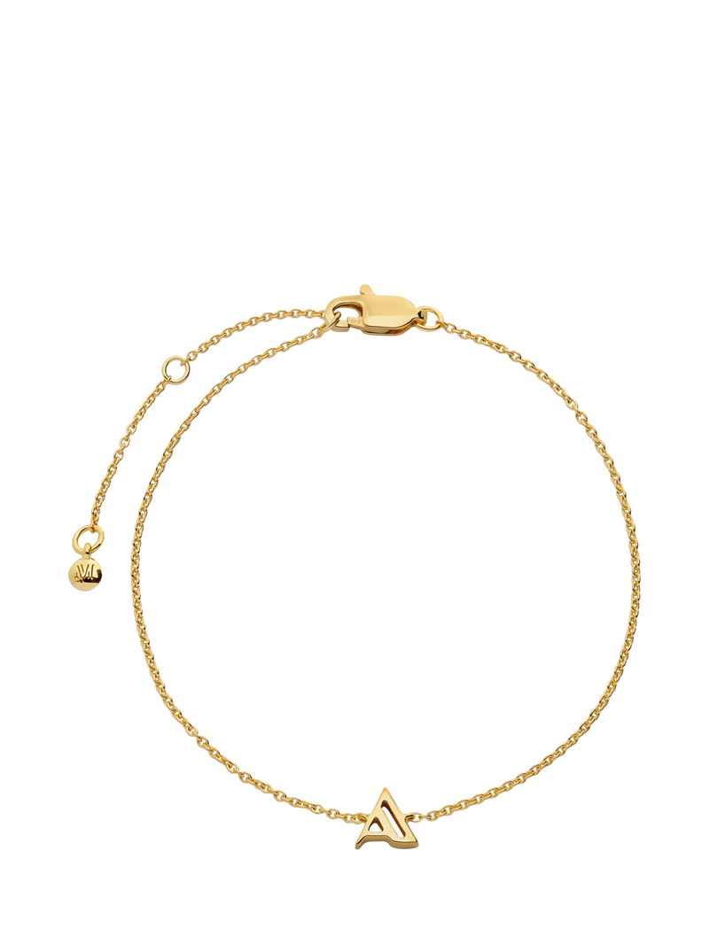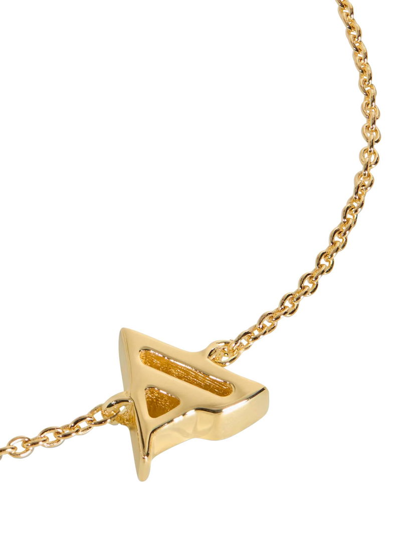 A single initial with a geometric Art Deco-inspired design suspended on a fine chain. It is crafted from 100% recycled 18ct gold vermeil and is adjustable in length. A simple way to personalise your look.