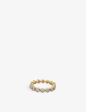 Monica Vinader 18ct yellow gold-plated vermeil sterling-silver and 0.006ct lab-grown diamond ring. 100% 18ct yellow gold-plated vermeil on sterling silver 1 lab-grown diamond Slip-on fastening. Domed silhouette, central diamond, polished finish. Carat weight: 0.006ct. Carat cut: round brilliant.