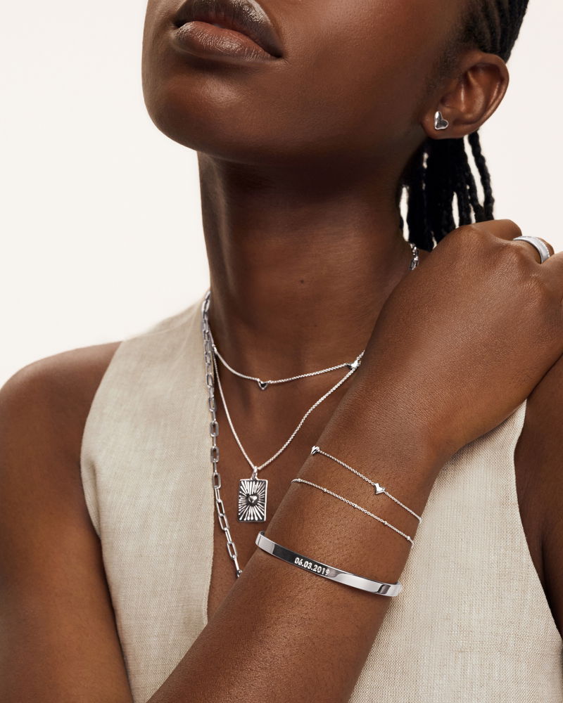 Tiny hearts. Giant impact. This everyday icon features five perfectly positioned hearts - each inspired by a heart-shaped pebble and expertly set in sterling silver. Finished with an adjustable clasp so you can find your perfect fit.