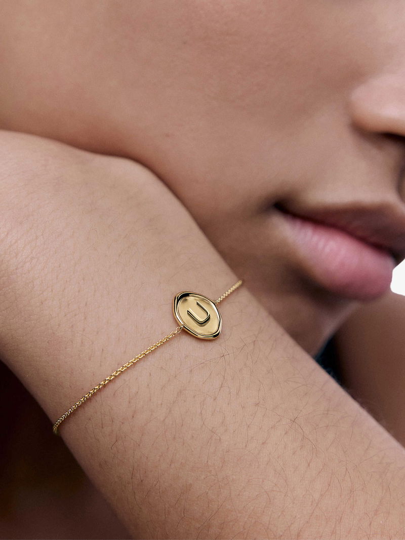 Initial U Stamp 18ct Yellow Gold Vermeil Chain Bracelet