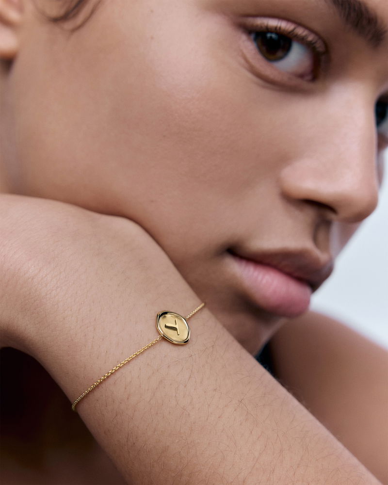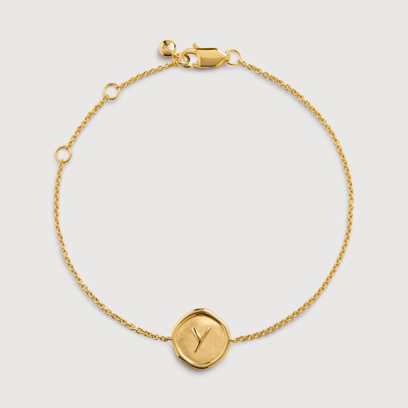 Initial Y Stamp Chain Bracelet