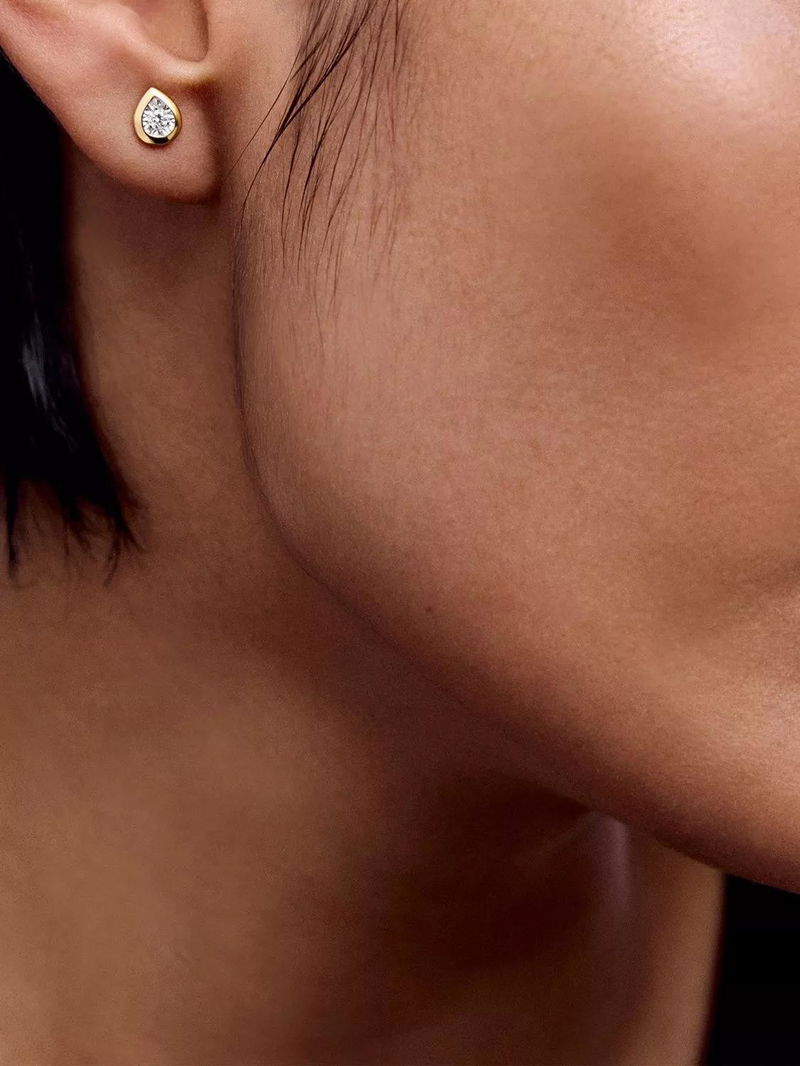 Experience the The joy of dressing up - or down. These stud earrings are crafted in 18k gold vermeil with pear-set lab grown diamonds. Suitable for pierced ears only.