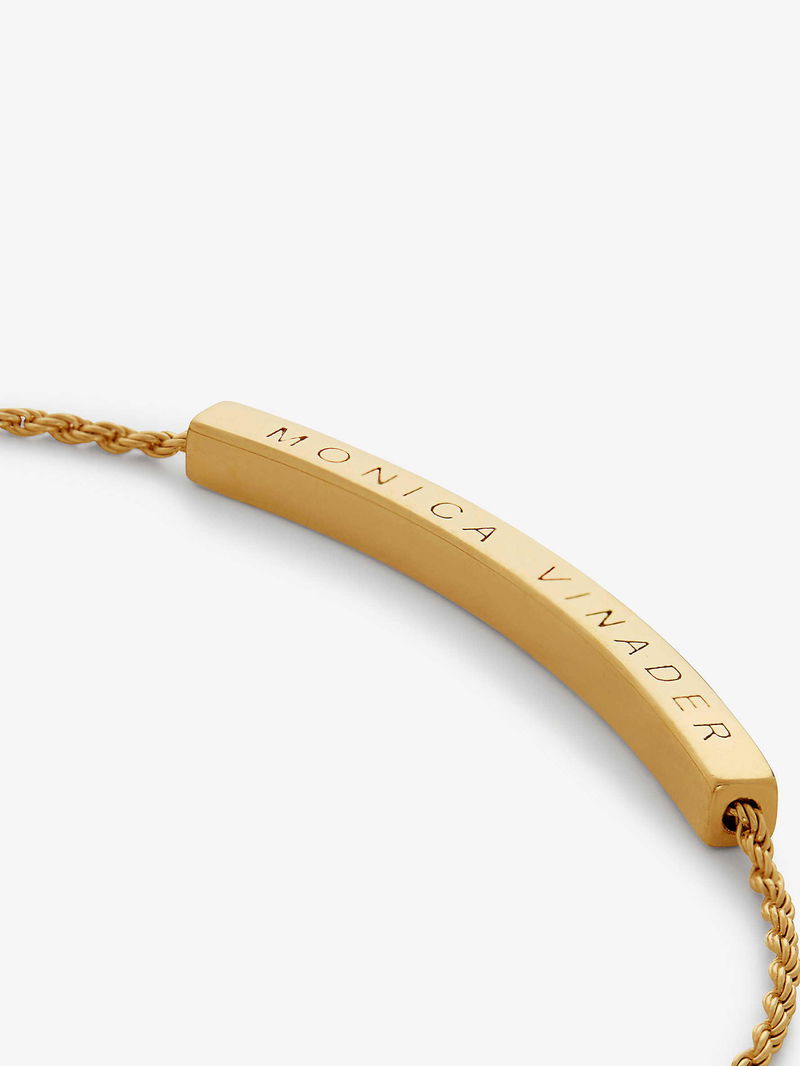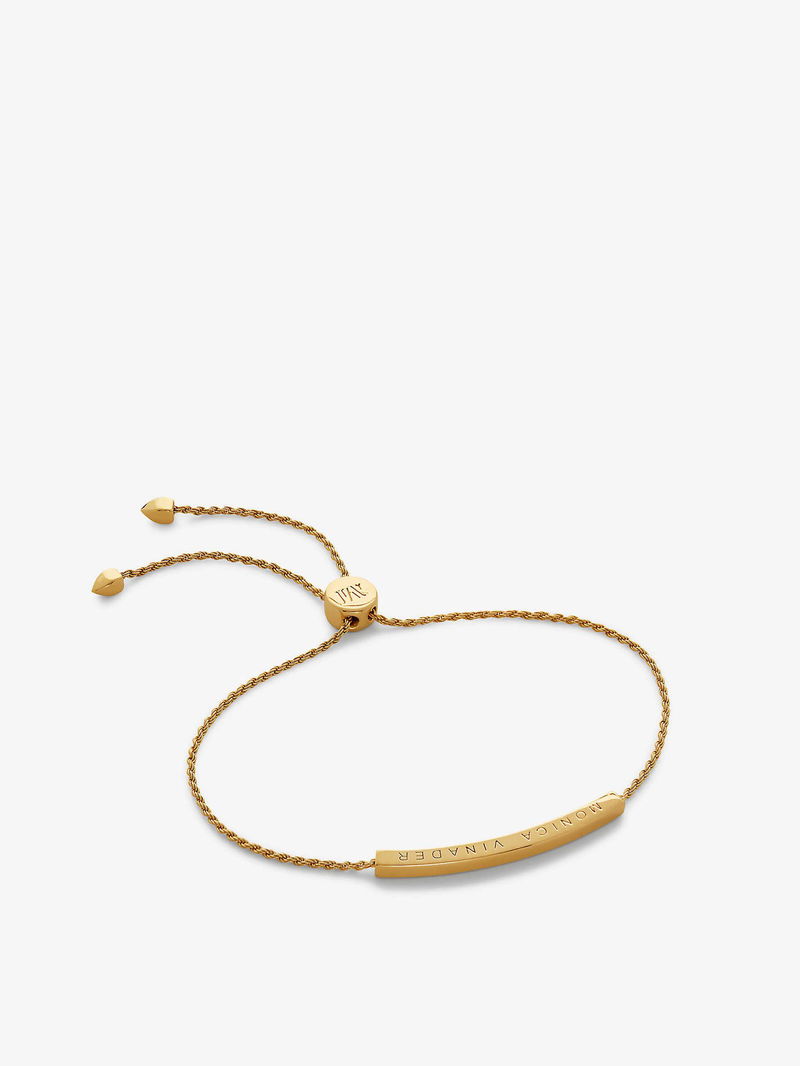 Monica Vinader 18ct yellow gold-plated vermeil recycled sterling-silver bracelet. Toggle-clasp fastening. Brand engraved rectangle bar at front, branded clasp, polished finish, handmade, adjustable length.