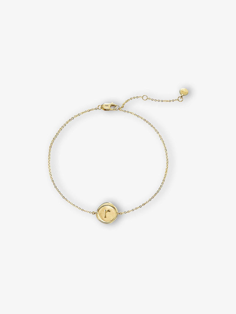 Mini Initial R Stamp 14ct Yellow-Gold Bracelet