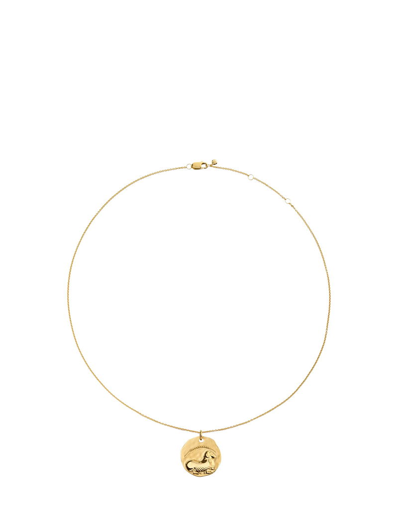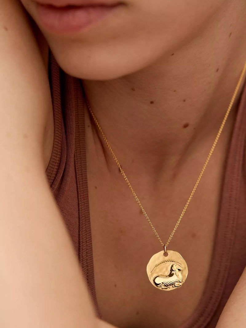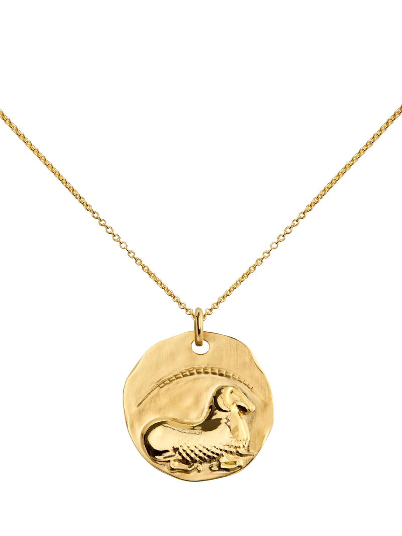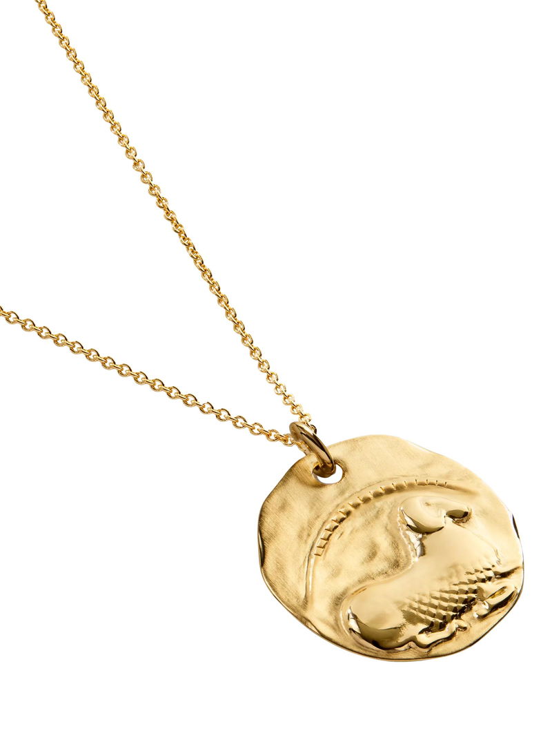 This adjustable length zodiac pendant is crafted in 100% recycled 18k gold vermeil.