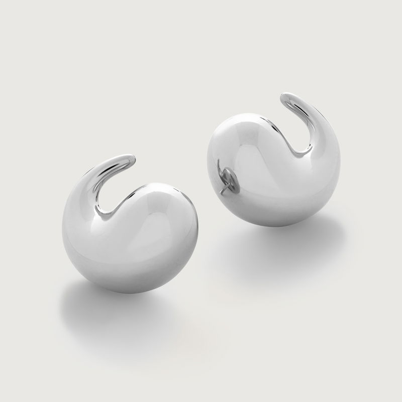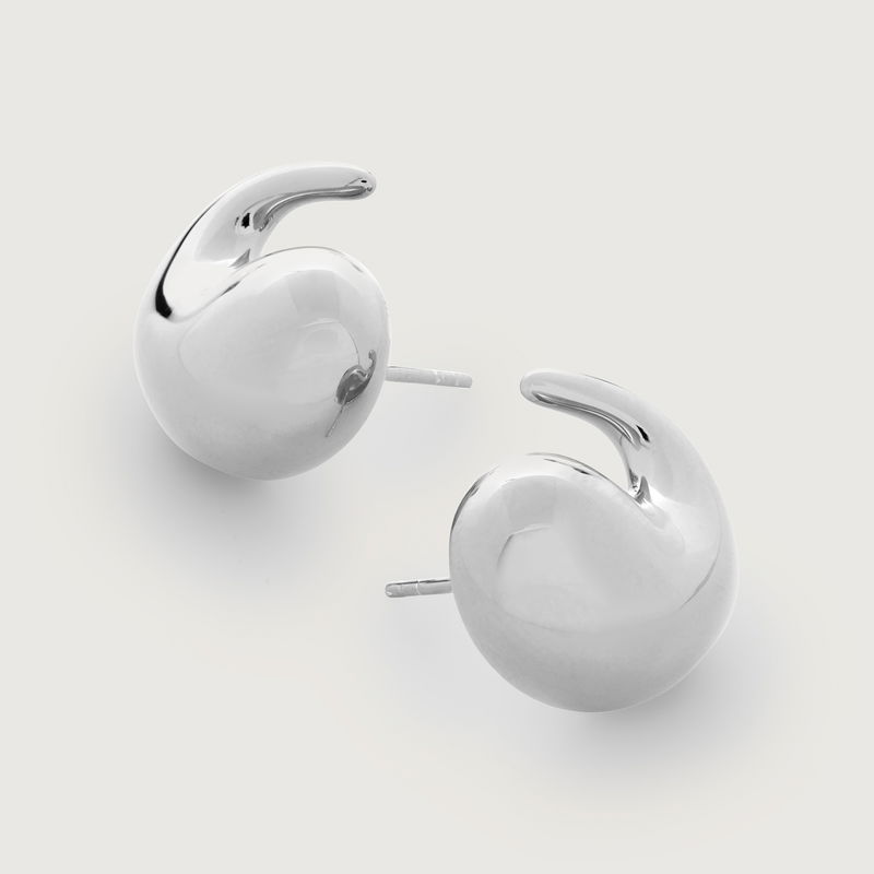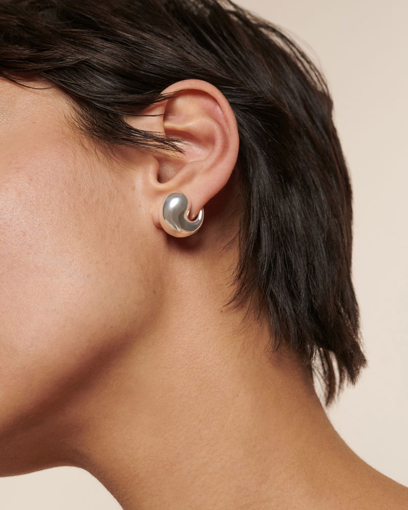 Our bestselling Nura Earrings, now in sterling silver. Inspired by sculpture, these studs hug the ear lobe for a wrap effect.