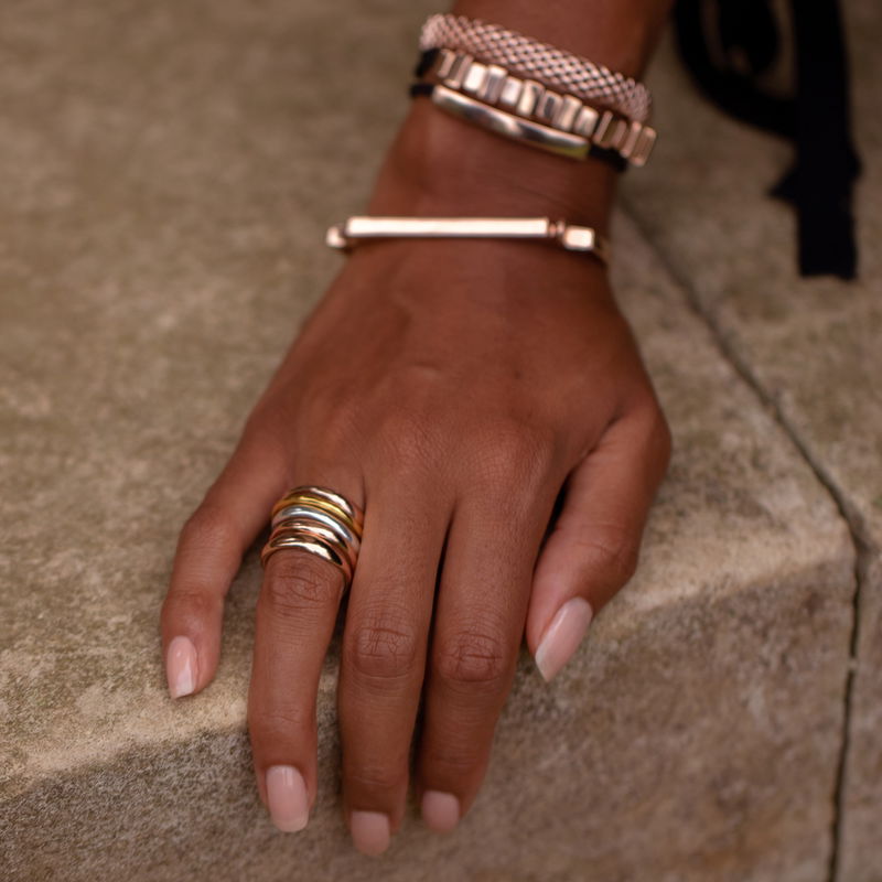 The curves on this stacking ring are to die for. Wear one across every finger, or stack a few to see how well those curves sit together.