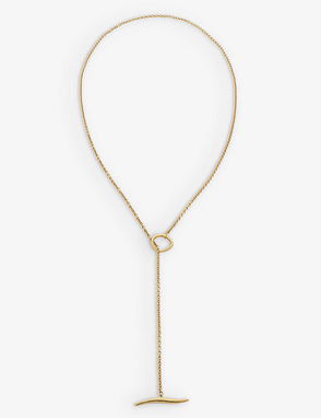 Monica Vinader 18ct yellow-gold vermeil plated pearl pendant. Embellishment 1 baroque pearl. Slips on. Pearl embellishment, polished hardware, single charm.