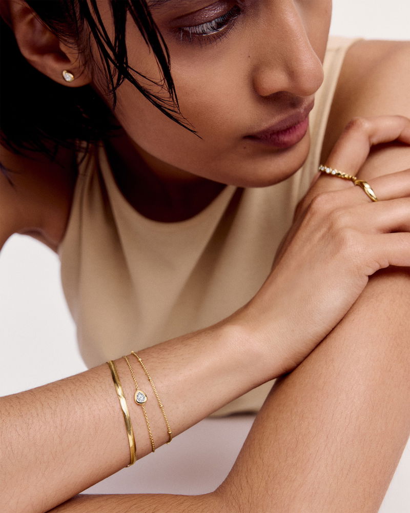 Monica Vinader’s luxurious but accessible pieces are beloved worldwide for their understated aesthetic. Born in San Sebastian, Spain, Monica is an artist, adventurer and designer. Her pieces are now made using only recycled gold and silver and sustainably sourced gemstones, diamonds and pearls.