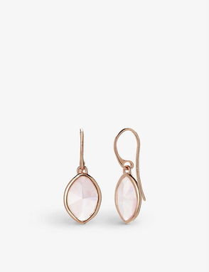 Monica Vinader 18ct yellow gold-plated vermeil sterling silver and aquamarine drop earrings. Hinged-snap fastening. Polished finish, aquamarine bead, logo-engraved.