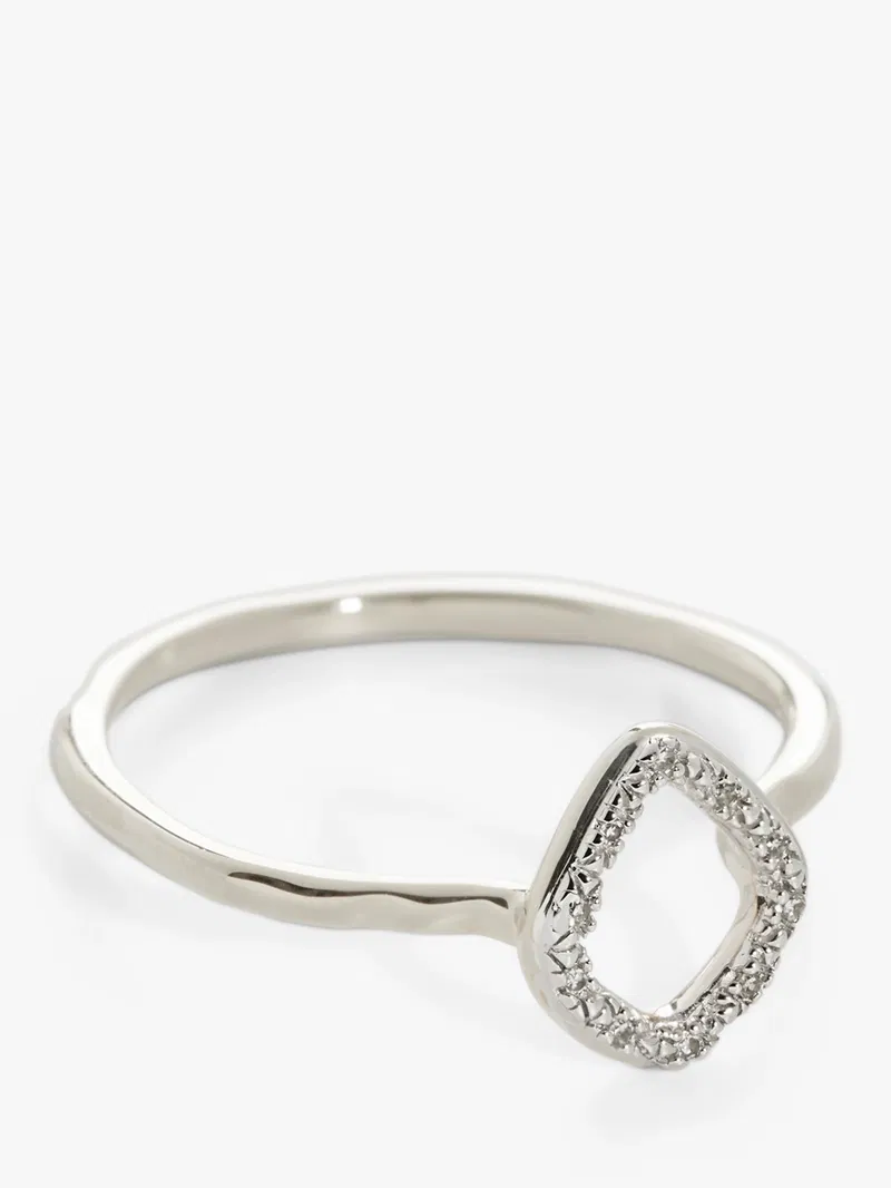 This delicate Monica Vinader ring presents an organically-shaped open element set with ethically-sourced brilliant-cut diamonds. This petite stacking ring is part of the Riva collection, influenced by the Italian Riviera, that reflects objects found along the shore.