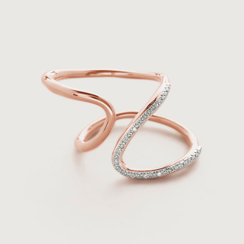 Riva's distinctive wave shape, now in a wrap design and pavé set with ethically sourced diamonds. Pair with other Riva diamond pieces for an everday diamond look, or bring a touch of diamonds to your ring stack.