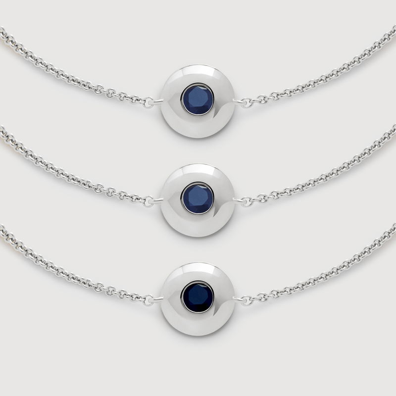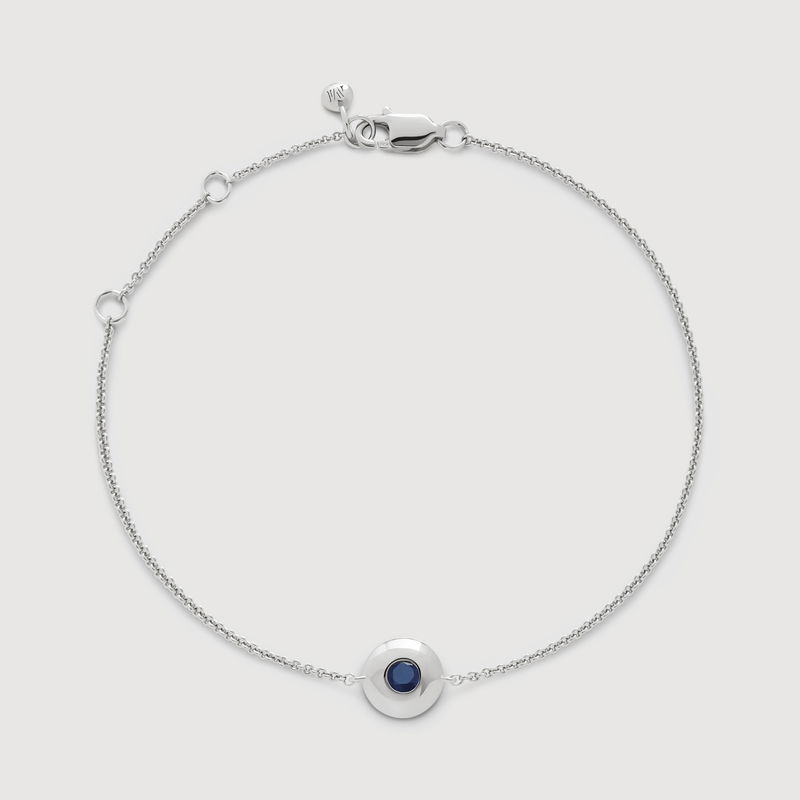 September birthstone chain bracelet in sterling silver and blue sapphire.