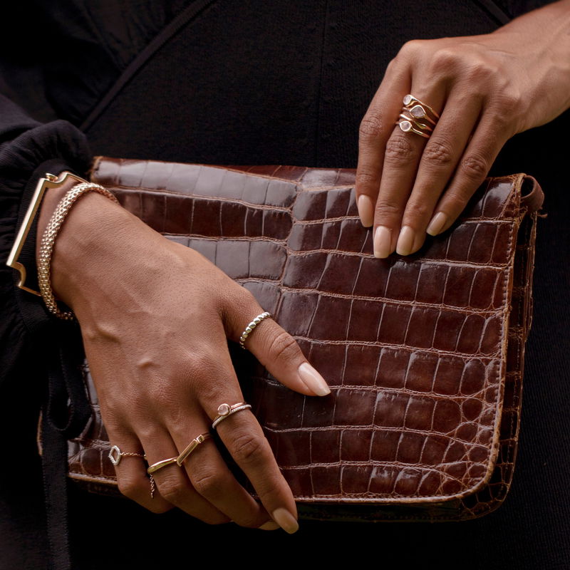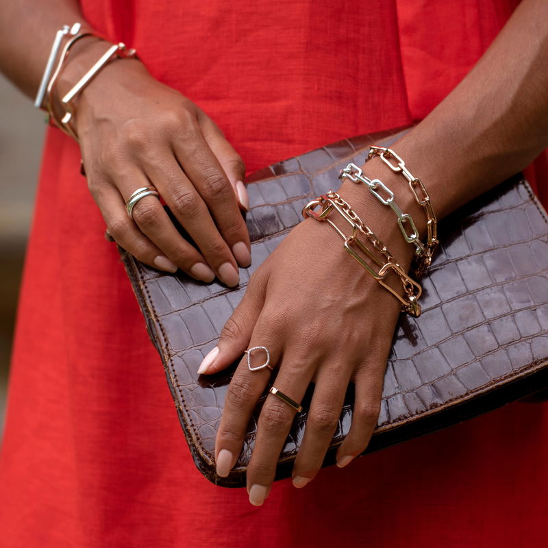 The Signature ring blends directional design with effortless style. Each piece mixes strong, clean lines with flowing curves making it both modern and feminine. Pair with the Signature bangle for an iconic Monica Vinader look.