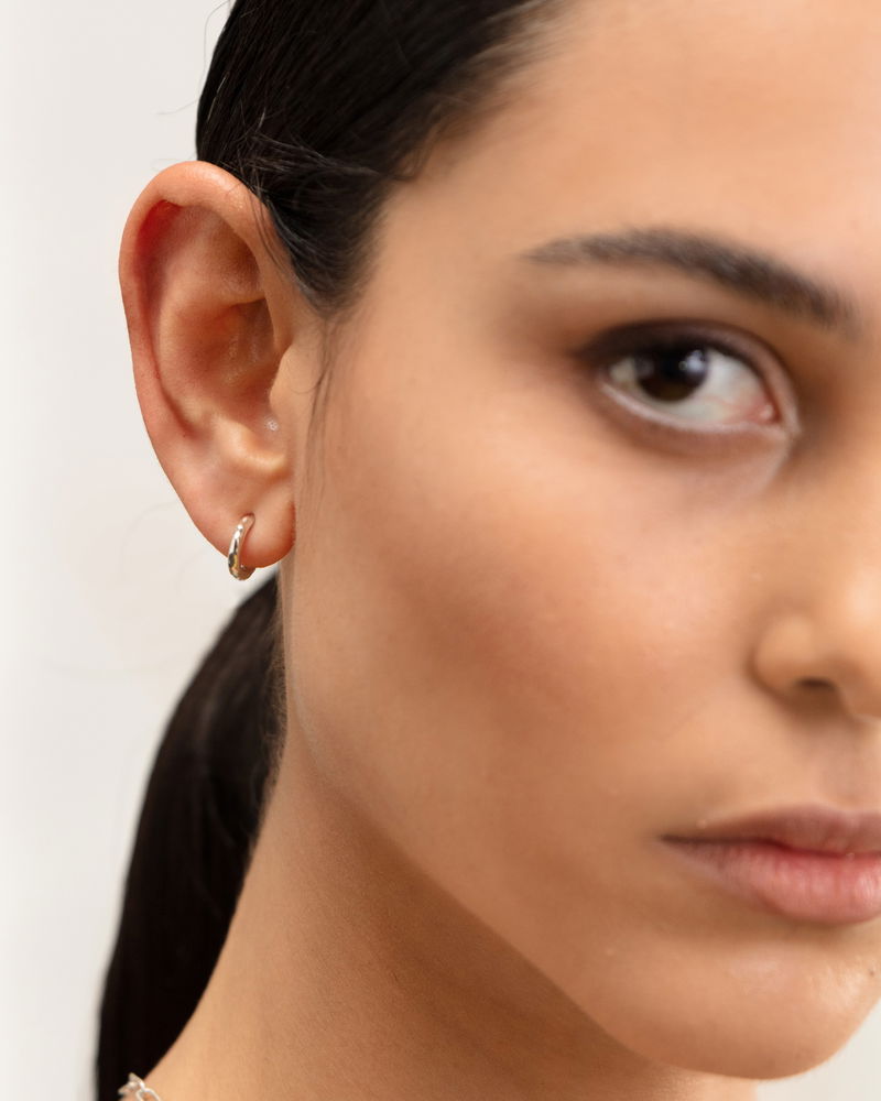 A sleek, subtly textured sterling silver huggie, designed to gently hug your lobe. Style up our Ziggy Huggie with climbers, cuffs and studs.