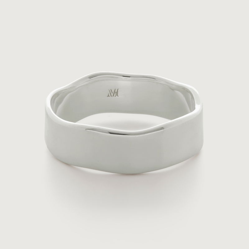 This ring is hand finished with an irregular edge, so it pairs seamlessly with itself. Stack it up to create a bold silver look, pair with our gold vermeil version for mixed metal styling, or wear alone.