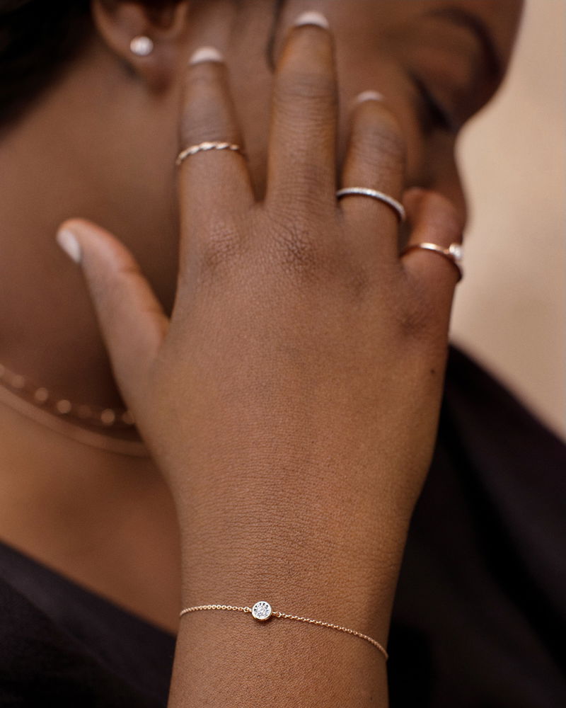 It's your time to shine. This bracelet is crafted in 18k gold vermeil with a round-cut lab grown diamond. Style alone or stacked - it's versatile like that.