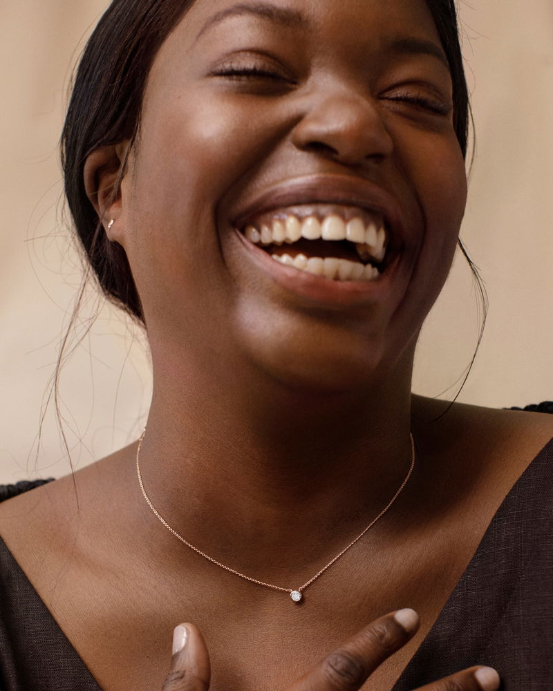 It's your time to shine. This adjustable necklace is crafted in 18k rose gold vermeil with a round-cut lab grown diamond. Style alone or layered - it's versatile like that.