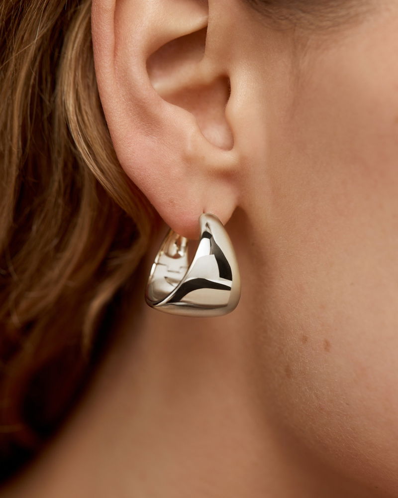 The good kind of drama: tapered, sterling silver. Finished with a hinge closure for maximum comfort and security.