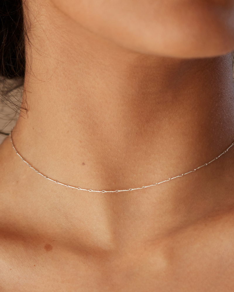 A super-fine, plaited texture chain featuring delicate hand crafted twists. The adjustable clasp means you can style this as a choker or a necklace. Perfect for layering, adding a pendant, or wearing solo.