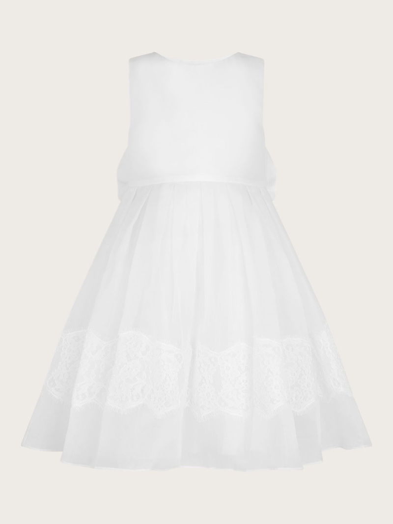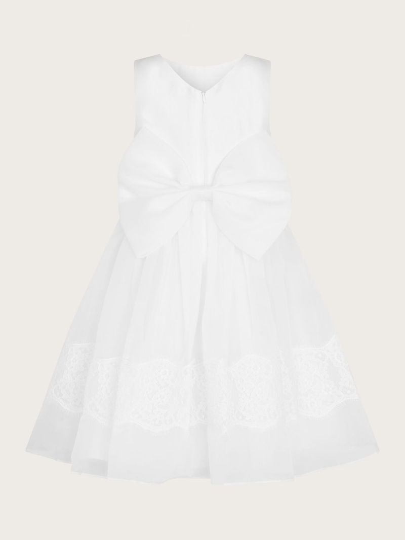 Ready and waiting for a special day, this occasion dress is full of pretty detailing. From the lace panelling on the skirt, to the big beautiful bow to the back, this piece fits snuggly at the bodice for all-day comfort.