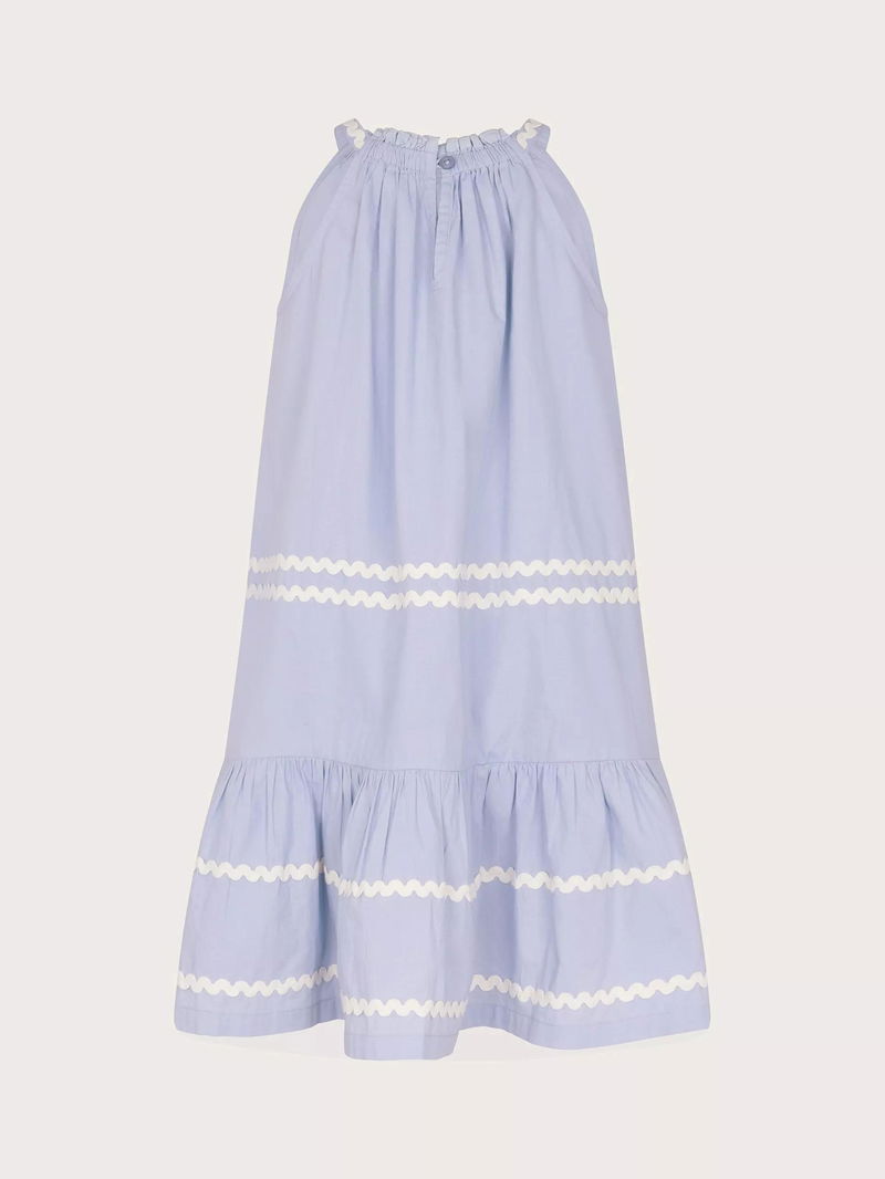 Divine. Named after one of Italy's most picturesque coasts, this cute cotton dress is perfect for the next family holiday. Sleeveless with a floaty frilly hem, it's decorated with white embroidered flowers and ric-rac trimmings to match.