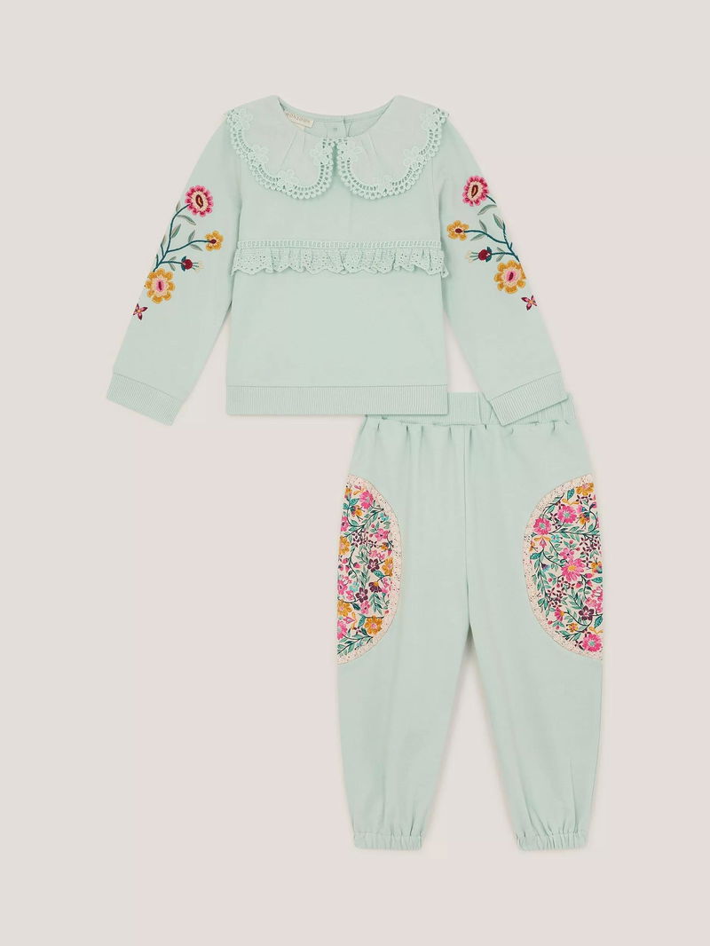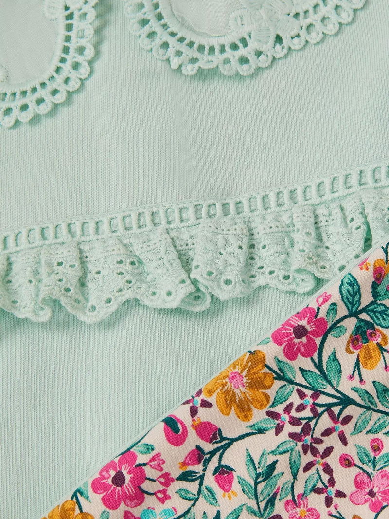 Baby Cotton Floral Top & Joggers Set, Green