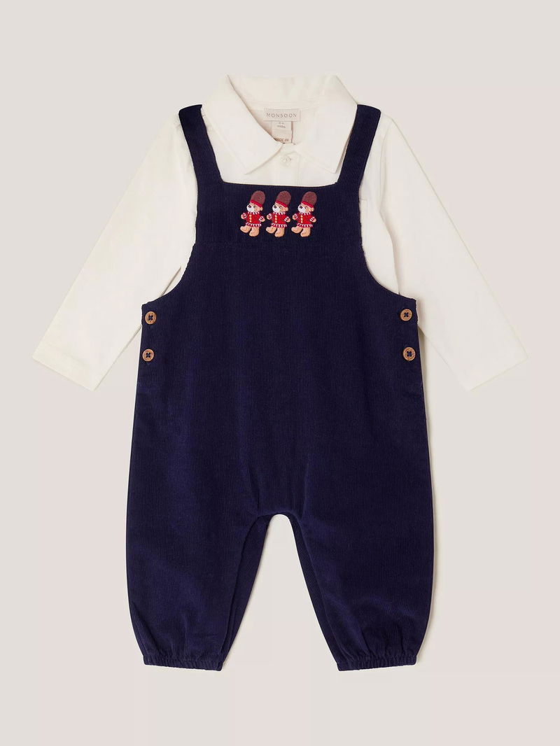 Baby Cotton Guardsman Bear Dungaree Set, Navy