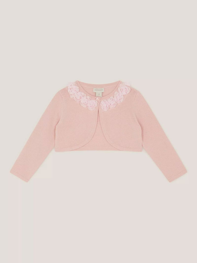Baby Ottilie Appliqué Rose Cardigan, Dusky Pink